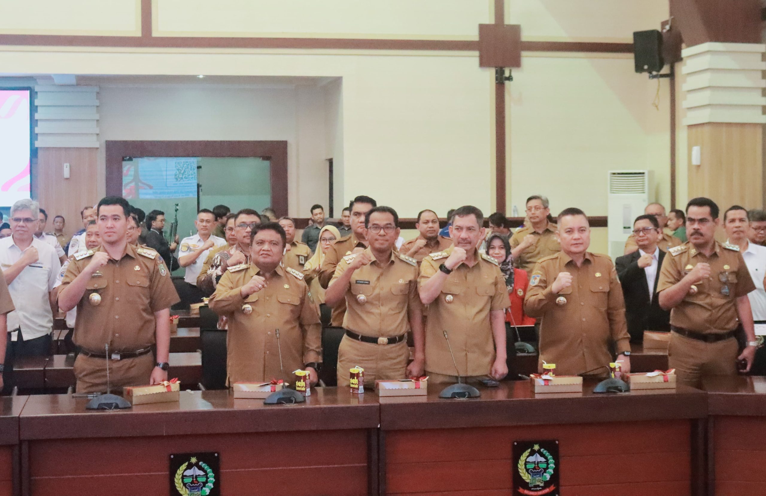 Penyerahan DIPA dan Daftar Alokasi Transfer ke Daerah (TKD) Provinsi Sulawesi Selatan TA. 2025 dihadiri seluruh Bupati/Walikota se Sulawesi Selatan baik secara langsung maupun secara daring.