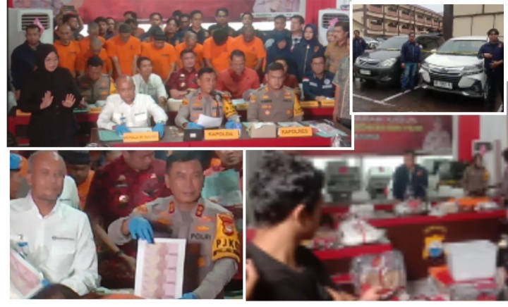Dalam rilis Sindikat Upal yang melibatkan petinggi Kampus, terdapat 17 tersangka, serta sejumlah barang bukti dipamerkan, termasuk mesin canggih pembuat uang palsu yang tidak terdeteksi X-ray dan puluhan rim kertas, tinta serat dua unit roda empat