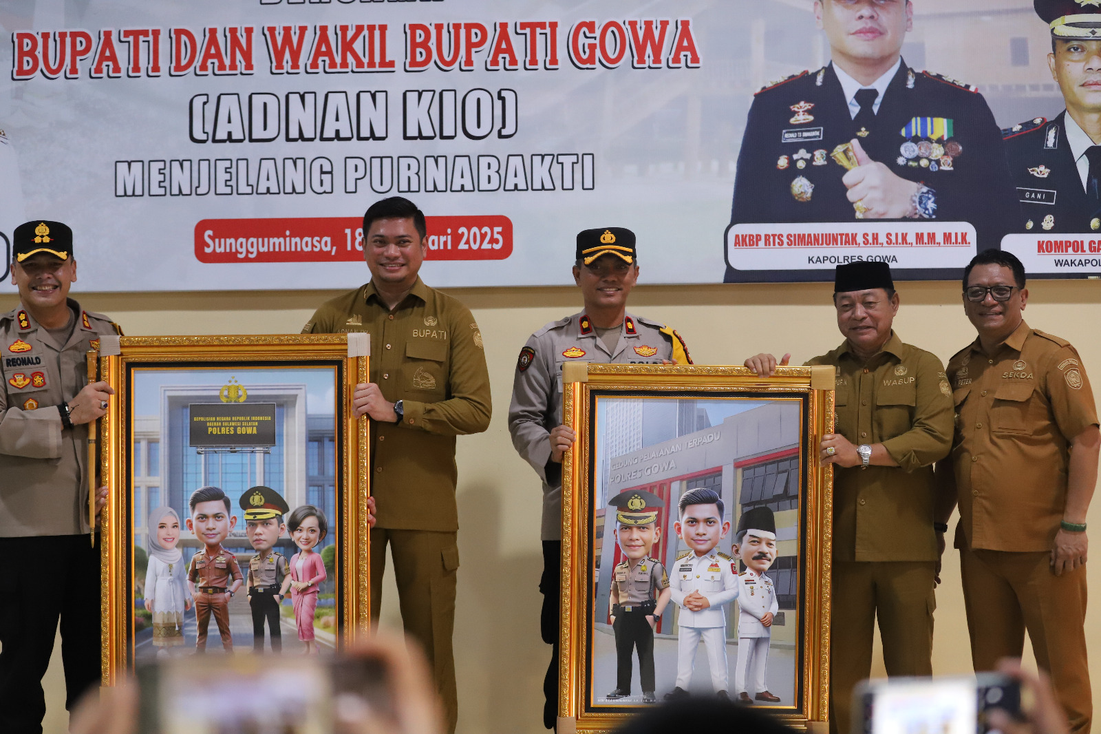 Sebagai bentuk penghargaan, Kapolres Gowa menyerahkan cendera mata kepada Bupati dan Wakil Bupati Gowa sebagai simbol kebersamaan dan kerja sama yang telah terjalin selama ini.