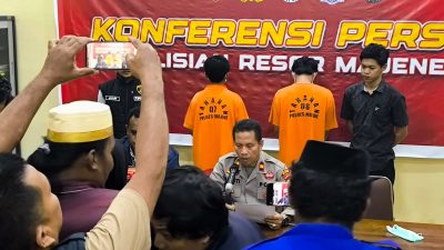 Polres Majene, Beritaintelijennews.com – Kasat Reskrim Polres Majene, AKP Laurensius Madya Waine, didampingi Kasi Humas Polres Majene, IPTU Suyuti, dalam konferensi pers di ruang data Polres Majene pada Kamis (13/3/2025), mengungkapkan bahwa Polres Majene berhasil mengamankan dua terduga pelaku kejahatan dalam Operasi Pekat Marano 2025.