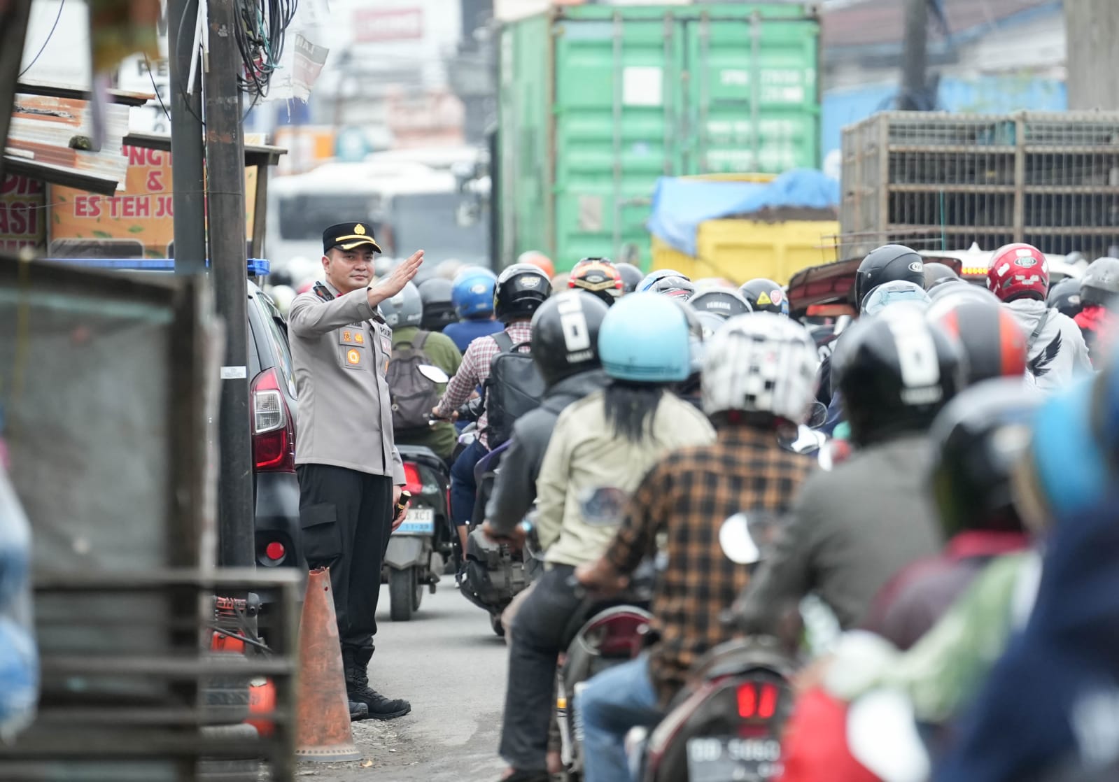 Dalam pengaturan lalu lintas tersebut, Kapolres tidak segan membantu personel menghentikan kendaraan dan mengarahkan arus, serta memberikan imbauan kepada para pengendara agar tetap tertib dan mematuhi aturan berlalu lintas.