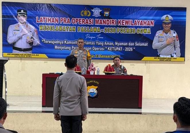 Gowa – Polres Gowa menggelar Latihan Pra Operasi Mandiri Kewilayahan Keselamatan Pallawa-2026 yang berlangsung di Aula Rewako Wira Wicaksana Laghawa Polres Gowa, Senin (2/2/2026).
