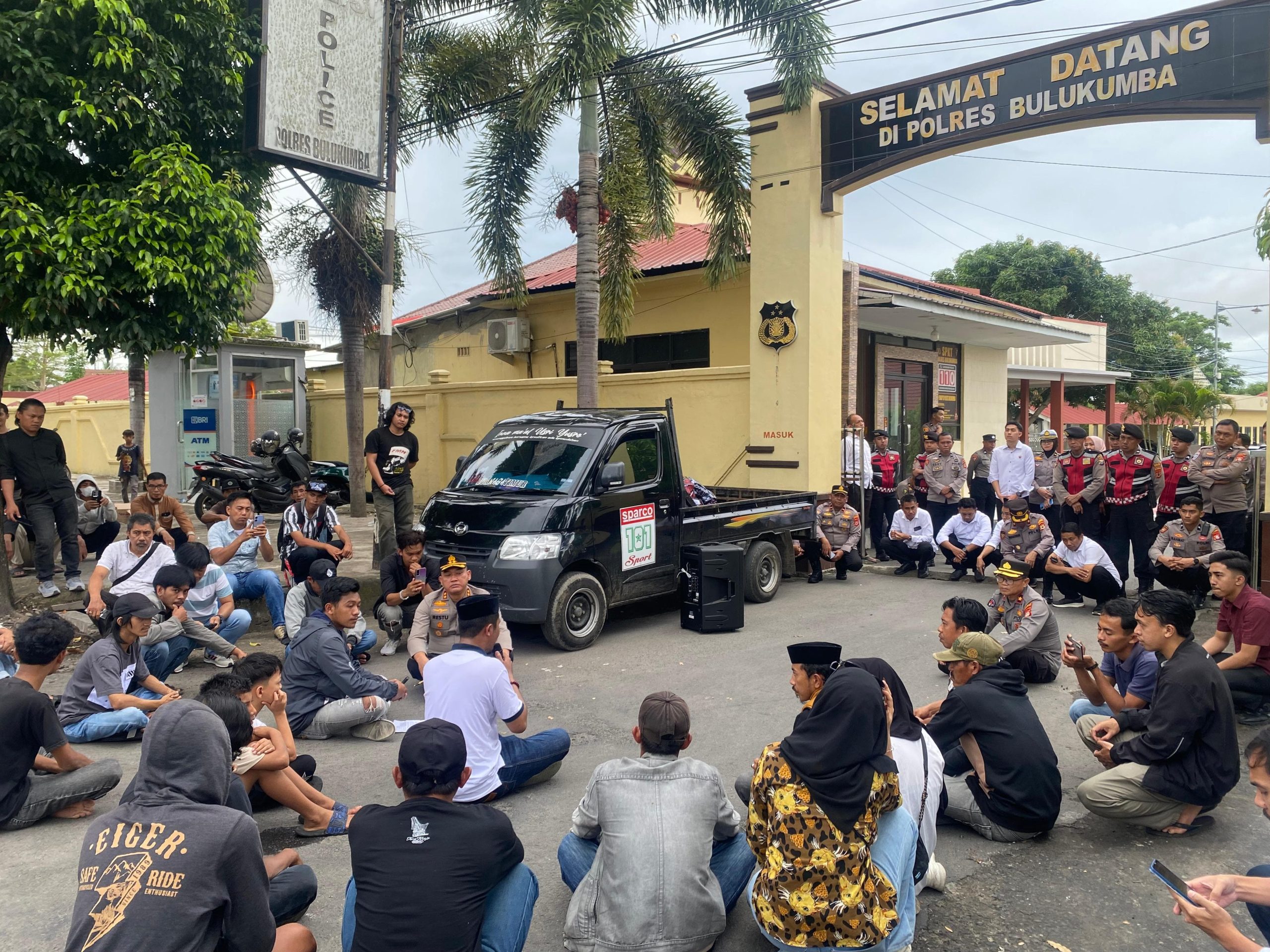Kapolres Bulukumba, AKBP Restu Wijayanto, S.I.K., turun langsung menemui peserta aksi di depan Mapolres. Sebelumnya, sekitar 30 peserta aksi telah dipersilakan untuk melakukan audiensi di Aula Polres Bulukumba, namun mereka meminta agar Kapolres menemui langsung di lokasi aksi.
